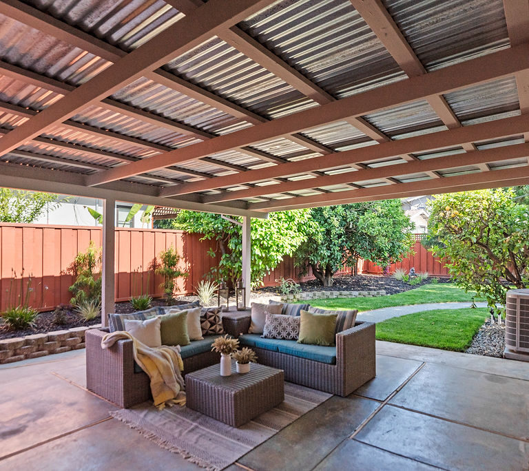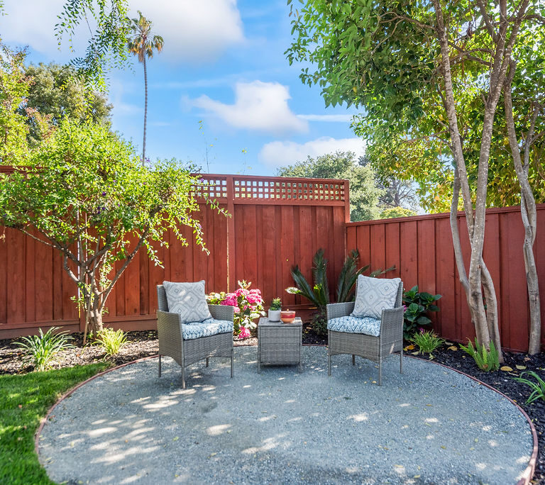 Additional highlights include attractive brushed nickel finishes in both bathrooms and roomy garage with built-in shelving, utility sink, and space for extra storage. Enjoy the Bay Area’s beautiful year-round weather in a backyard designed for relaxation with a covered patio, lemon and orange trees, and mature shade tree.